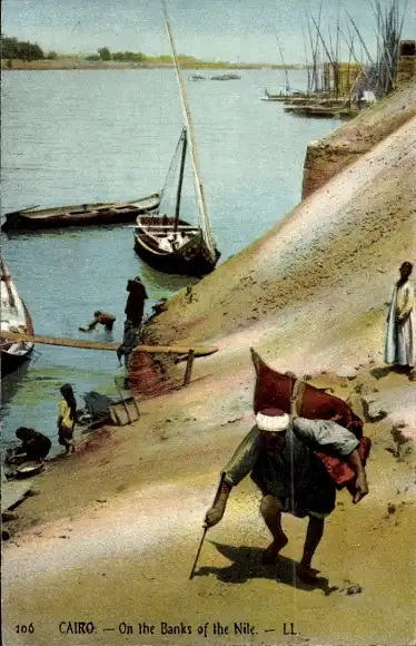 Ak Cairo Kairo Ägypten, Am Ufer des Nils, Boote, Lastenträger