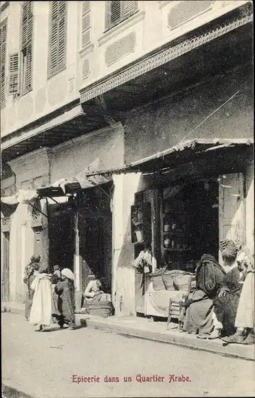 Ak Cairo Kairo Ägypten, Einkaufsstraße, Epicerie dans un Quartier Arabe