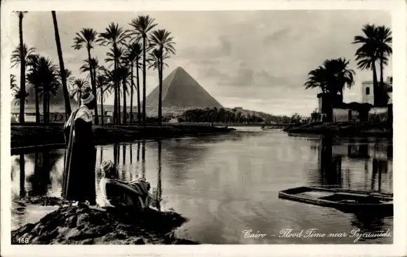 Ak Cairo Kairo Ägypten, Flutzeit, Pyramide