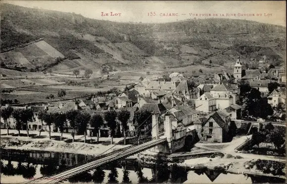 Ak Cajarc Lot, Vue prise de la Rive Gauche du Lot