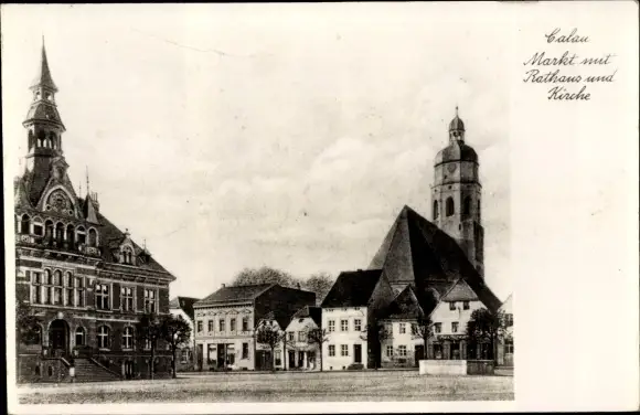 Ak Calau in der Niederlausitz, Markt mit Rathaus und Kirche