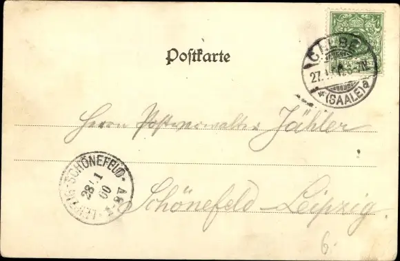 gelaufen 1900, Eckknick links unten, sonst guter Zustand