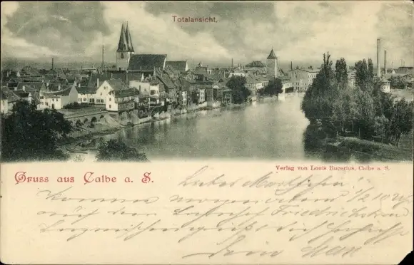 Ak Calbe an der Saale, Totalansicht der Ortschaft