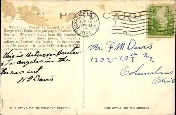 Zustand, siehe Scan, gelaufen, 1931 - ca 14 cm X 9 cm