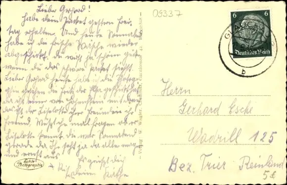 gelaufen 1938, Einriss, Eckknick links oben, sonst guter Zustand