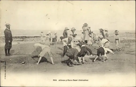 Ak Calvados, Kinder graben am Strand