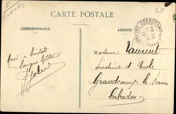 gelaufen 1912, fleckig, Eckknick rechts oben, sonst guter Zustand