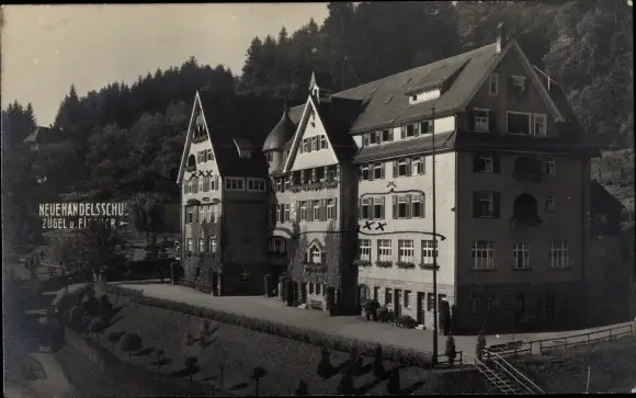Ak Calw im Nordschwarzwald, Neue Handelsschule, Wald