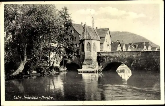 Ak Calw im Nordschwarzwald, Nikolaus-Kirche, Brücke