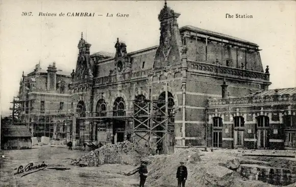 Ak Cambrai Nord, Der Bahnhof, Ruinen