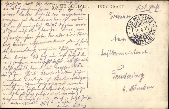 Zustand, siehe Scan, gelaufen, 1915 - ca 14 cm X 9 cm