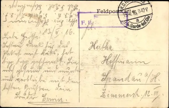 Zustand, siehe Scan, gelaufen, 1916 - ca 14 cm X 9 cm