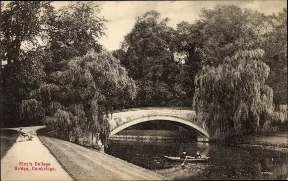 Ak Cambridge East England, King's College Bridge, Ruderboot