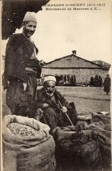 Ak Campagne d'Orient 1914-1917, Marchands de Marrons