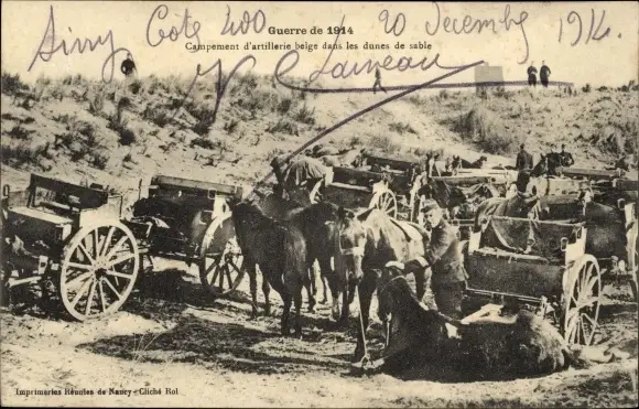 Ak Campement d'artillerie belge dans les dunes de sable, I WK