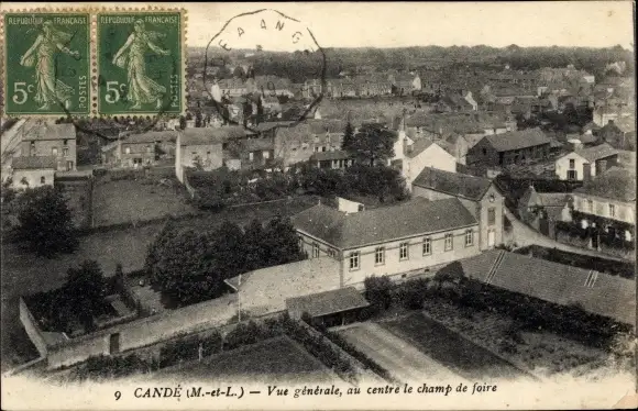 Ak Cande Maine et Loire, Vue générale, au centre le champ de foire