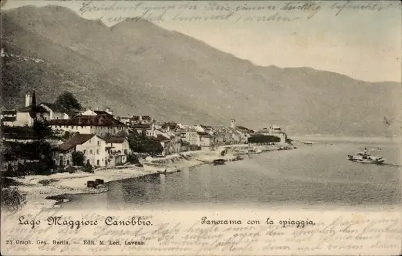Ak Cannobio Lago Maggiore Piemonte, Panorama, Strand