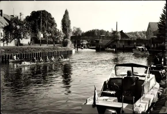 Ak Canow Wustrow Mecklenburgische Seenplatte, Partie an der Schleuse, Boote, Kanu