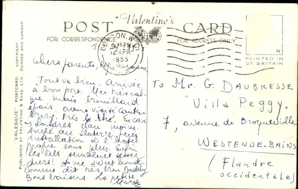 Zustand, siehe Scan, gelaufen, 1955 - ca 9 cm X 14 cm