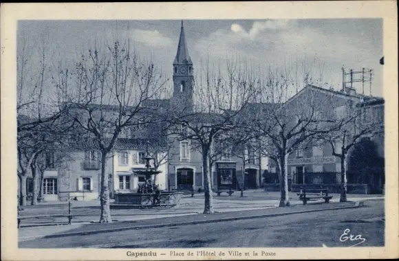 Ak Capendu Aude, Place de l'Hotel de Ville et la Poste