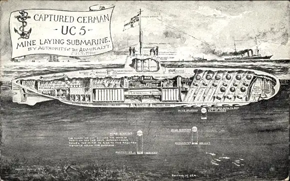 Ak Captured German UC 5, Mine laying Submarine, Deutsches U Boot