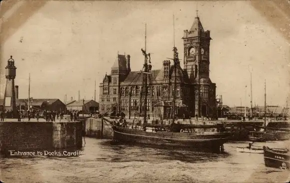 Ak Cardiff Wales, Eingang zu den Docks