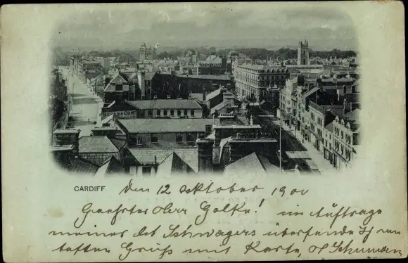 Ak Cardiff Wales, Totalansicht vom Ort