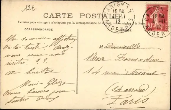 Zustand, siehe Scan, gelaufen, 1912 - ca 14 cm X 9 cm