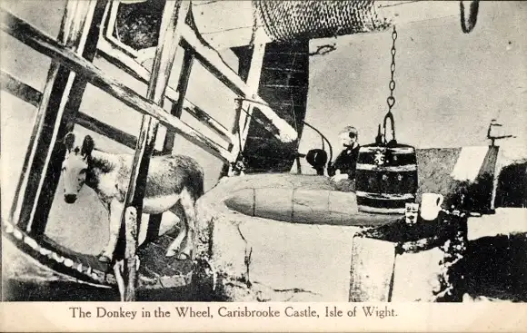 Ak Carisbrooke Isle of Wight England, Carisbrooke Castle, Der Esel im Rad