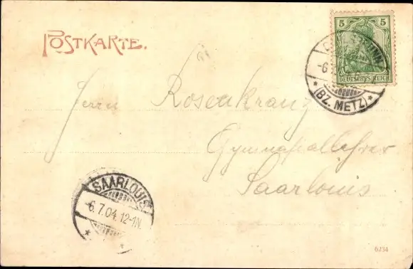 Zustand, siehe Scan, gelaufen, 1904 - ca 14 cm X 9 cm