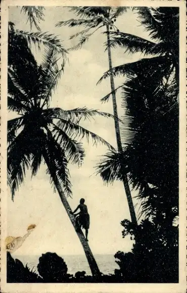 Ak Carolines Karolinen Mikronesien Ozeanien, Mann klettert auf Palme