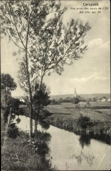 Ak Carspach Karspach Elsass Haut Rhin, Am Ufer der Ill