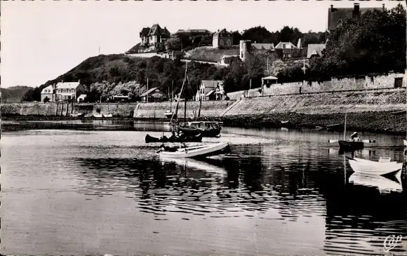 Ak Carteret Manche, Hafenansicht, Boote im Wasser, Uferbebauung, ruhige Atmosphäre