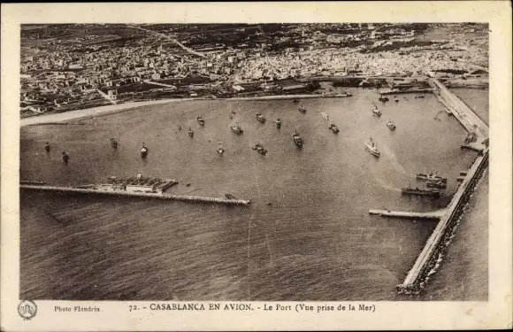 Ak Casablanca Marokko, Le Port (Vue prise de la Mer), en avion