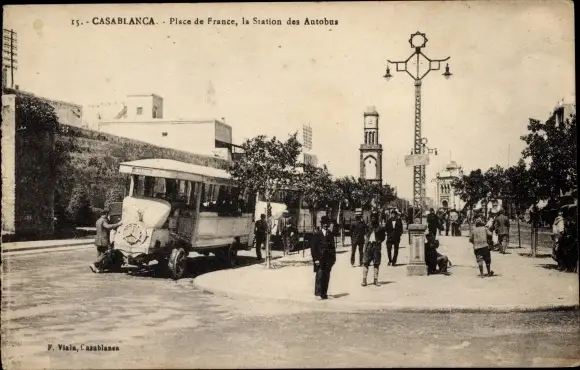 Ak Casablanca Marokko, Place de la France, Busbahnhof