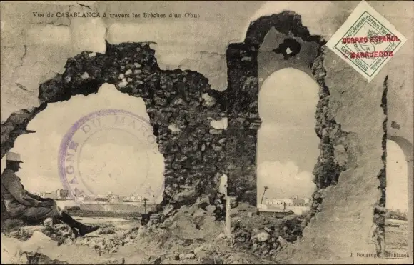 Ak Casablanca Marokko, Vue a travers les Breches d'un Obus