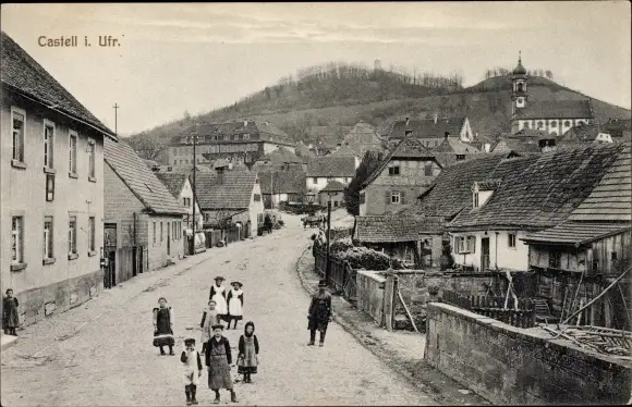Ak Castell Unterfranken, Straßenpartie im Ort, Kirche