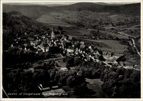 Ak Castell Unterfranken, Totalansicht, Fliegeraufnahme