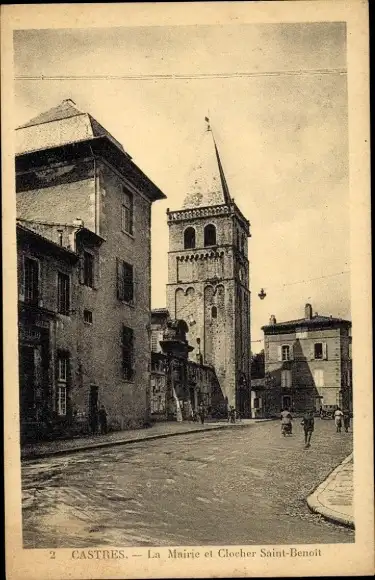 Ak Castres Tarn, Rathaus, Glockenturm Saint Benoit