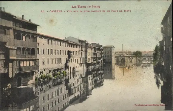 Ak Castres Tarn, Vue sur la rive gauche et le pont de Metz