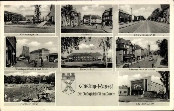 Ak Castrop Rauxel, Marktschule, City Lichtspiele, Kirche, Vinckeplatz