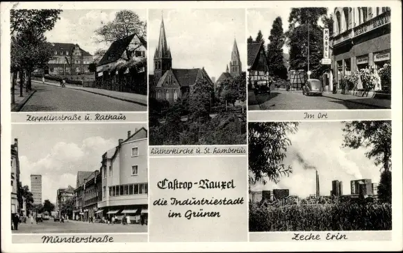 Ak Castrop Rauxel im Ruhrgebiet, Zeppelinstraße, Zeche Erin, Münsterstraße