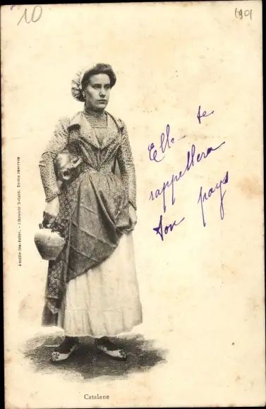 Ak Catalane, Katalanin in Tracht, Bäuerin, Tonkrüge