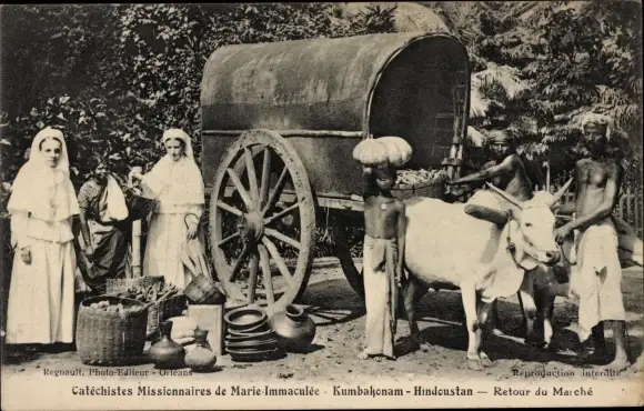 Ak Catéchistes Missionnaires de Marie Immaculée, Kumbakonam Hindoustan, Retour du Marché