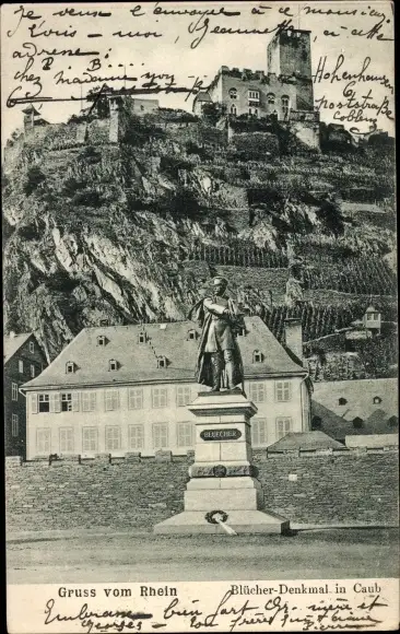 Ak Caub Kaub am Rhein, Blücher-Denkmal