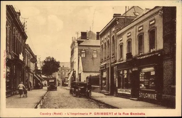 Ak Caudry Nord, L'Imprimerie P. Grimbert et la Rue Gambetta