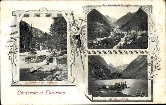Ak Cauterets Hautes Pyrénées, Panorama, Wasserfall Pont d’Espargne, Lac de Gaube