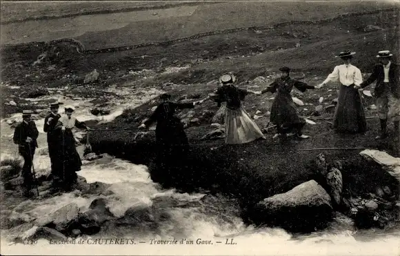 Ak Cauterets Hautes Pyrénées, Überquerung einer Gave