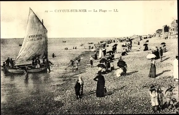 Ak Cayeux sur Mer Somme, La Plage, Strand, Segelboot