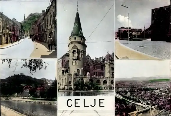 Ak Celje Cilli Slowenien, Straßenpartie, Panorama, Turm